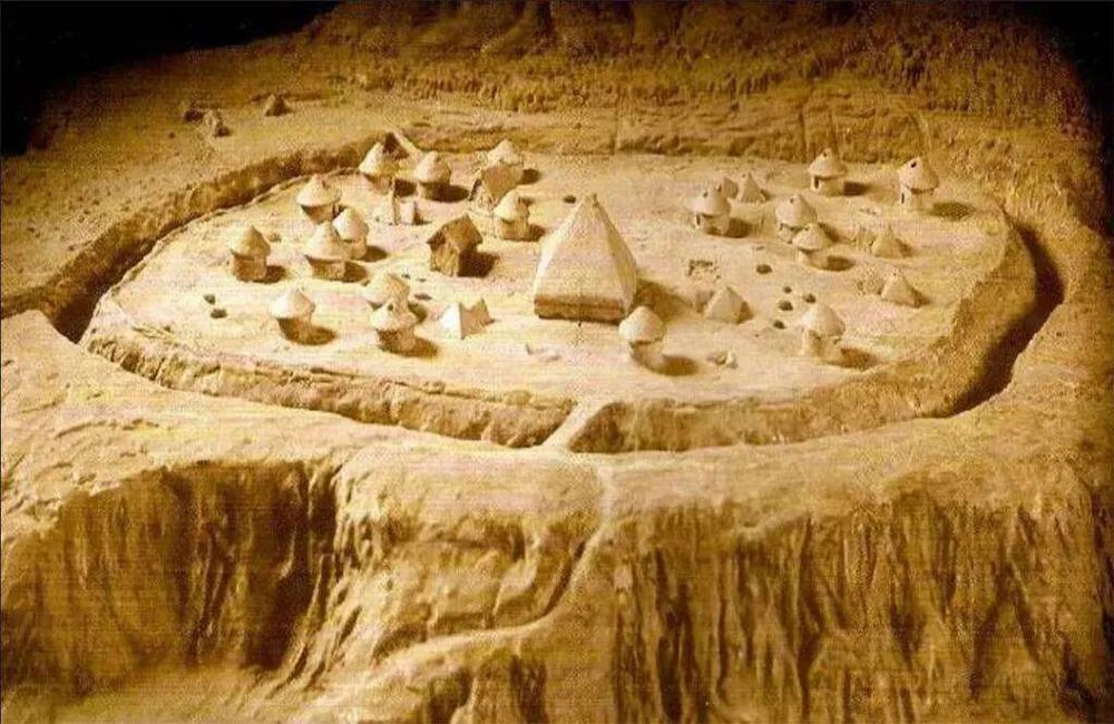 “壕”háo,形声字,从豪从土。“壕”=(豪,豢养牲畜的设施+土,挖土),在聚落周围挖出来的土沟,公有制时期用于豢养家畜的设施;私有制时期可作为防御工事。