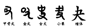“夬”(guài),这是一个指事字。甲骨文和金文的“夬”字,乃是在手(又)的食指部位增添一个圆圈,以此强调射箭时拇指上所套的板指。秦简古文将这一圆圈移在手(又)形之上,中间的一竖仍表示手指。小篆为了与“史”相区分,将“夬”的圆圈断裂。经由隶变,楷书将其简省为“夬”。