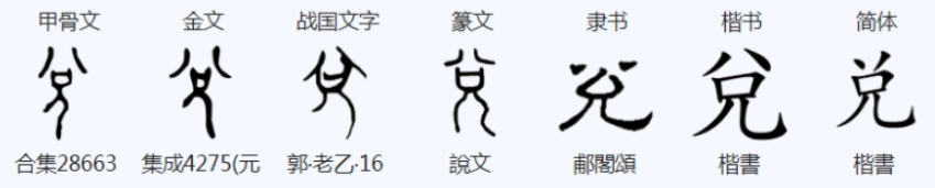 “兑”duì,会意字,从丿从乀从兄。“兑”的甲骨文=(丿、乀,汇聚+兄,人能发声、说话),两形会意,表示将口中的声音聚拢起来即为说话。“兑”从人,强调其为人的行为,引申义有说话、聚拢、汇聚等。