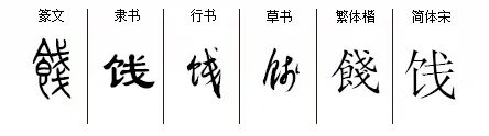 “饯”,形声字,“餞”的简体字,从饣从戋。“饯”字只见《说文》小篆,饣,与食物有关;戋,薄(情),两形会意,表义薄食。引申为薄酒等。