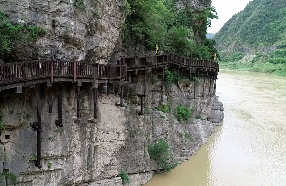 《崔浩云》险绝之处,旁凿山巖,施版梁为阁也。