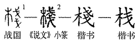 “栈”zhàn,形声字,“棧”的简体字,从木从戋。西周金文的“栈”字=(木,与木有关 + 戋,薄(情)),两形会意,用薄木板搭建的货架、桥梁。
