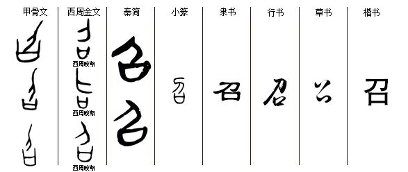“召”zhào,会意字,从口从刀。“召”字最早见于商代甲骨文,口,召唤;刀,农具。造字本义:唤人下田干农活。引申为呼唤、邀请、引来等。