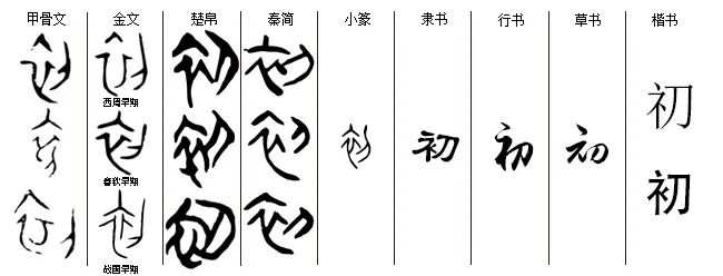 “初”chū,会意字,从衣从刀。“初”字最早见于商代甲骨文,衣,穿衣;刀,兵器、农具。古人外出采集、狩猎、务农必先穿衣,造字本义:(先)穿衣(后)劳作。