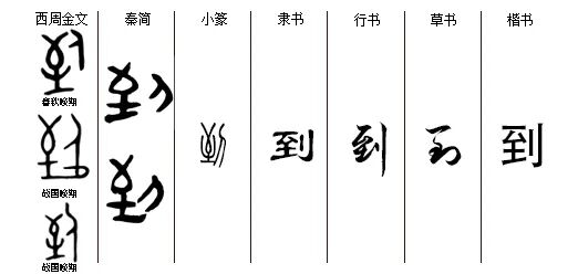 “到”dào,会意字,从至从刂。“到”字最早见于西周金文,至,粟穗成熟;刂,收割。造字本义:收割谷物,“至”的本义为粟穗成熟垂向地面,用刀切断后,粟穗掉落在地面即为‘往’,引申为从……来、往……去;粟穗掉落在手中,即为‘得’,引申为获得、成功等;粟穗垂向地面,即为‘反向’,引申为相反,后造孽乳字“倒”,如倒戈、倒立。