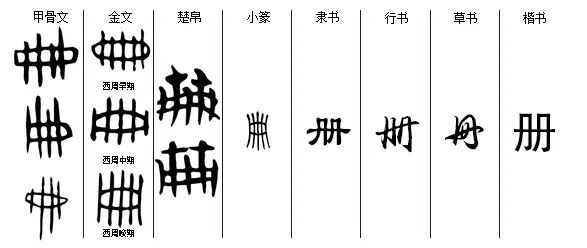 “册”cè,象形字,“册”字最早见于商代甲骨文。甲骨文的“册”形似编连的竹简,造字本义:竹简。引申为‘与书相关的事物’,如诏书,继而又有册封之义;引申为‘很多书’,如册子、书册等,继而又有‘量词’义。