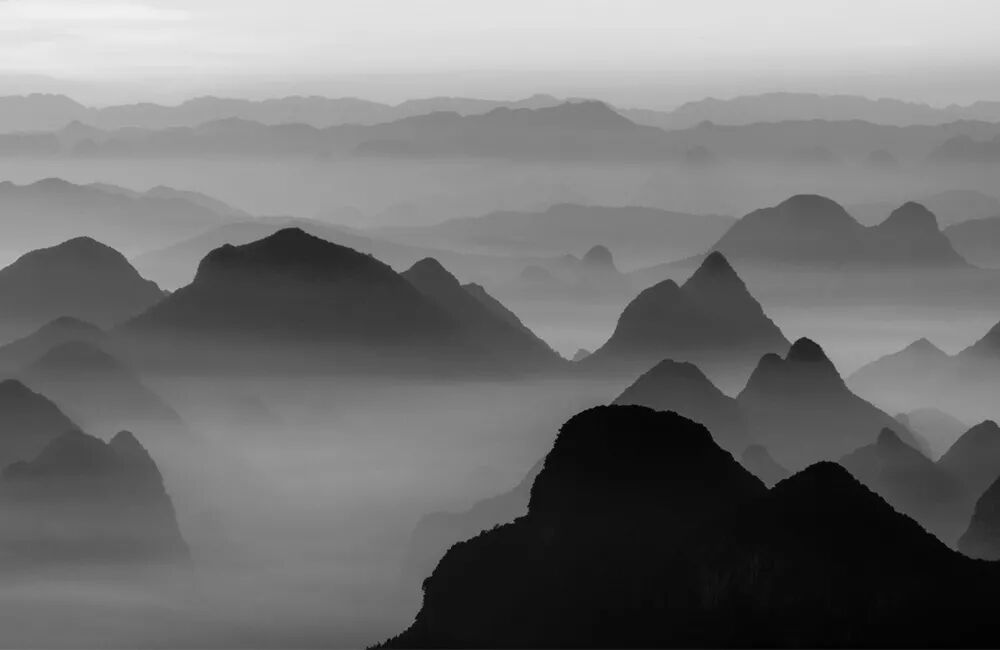 像刀切后一段段的群山