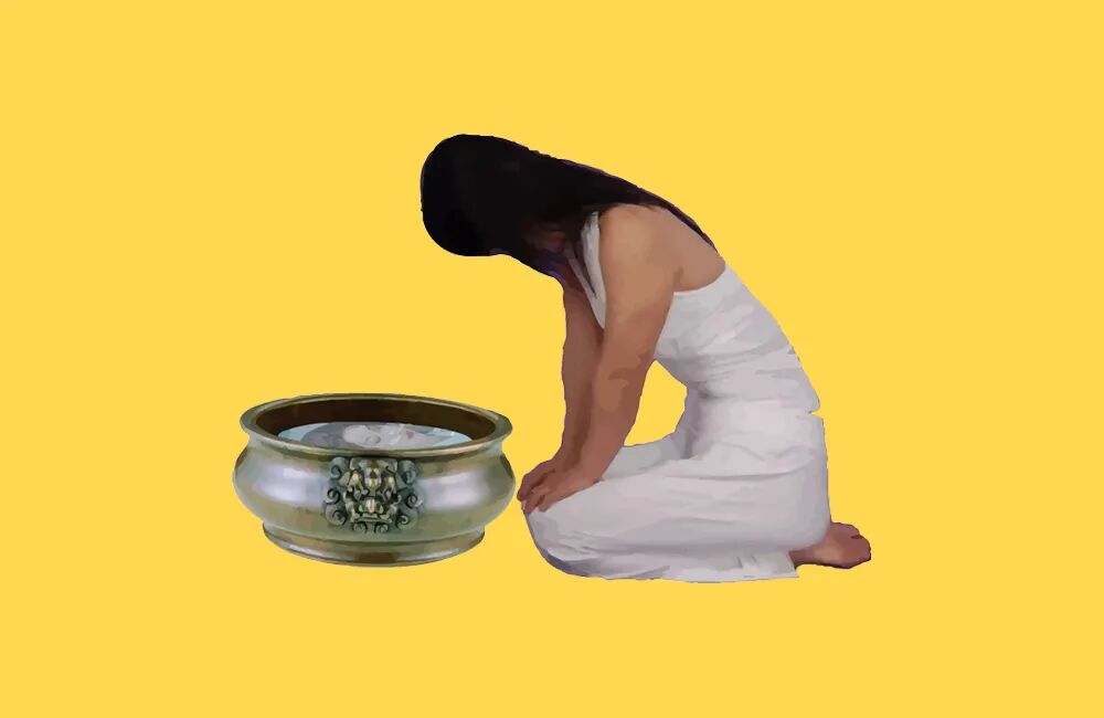 从水盆中照看自己的面影
