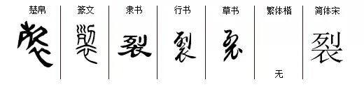 “裂”liè liě,形声字,从列从衣,“裂”字最早见于秦国简牍。列,像刀切后一段段的群山,此处引用‘一段段’的分段之义;衣,与衣服有关。造字本义:将衣帛裁剪或撕成一段段,引申为‘拆开、分割、决绝’等。