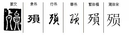 “殒”yǔn,形声字,“殞”的简体字,从歹从员,通“陨”,“殒”字目前只见于《说文》小篆。由“陨”分化出的形声字,造字本义:人从生到死。