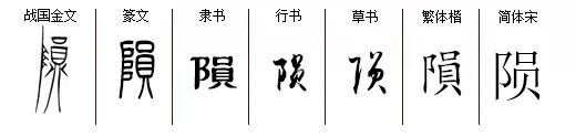 “陨”yǔn,形声字,“隕”的简体字,从阝(阜)从员,“陨”字最早见于战国晚期。阜,石磴(石阶),此处引用‘从高到低’的引申义;员,圆形,此处引申为‘近圆的物体’。造字本义:近圆的物体从高处落下,引申为‘人从生到死’,后造“殒”分化此义;引申为‘从多到少’,后造“损”分化此义。