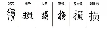 “损”sǔn,形声字,“損”的简体字,从扌从员,“损”字目前只见于《说文》小篆。由“陨”分化出的形声字,造字本义:从多到少。