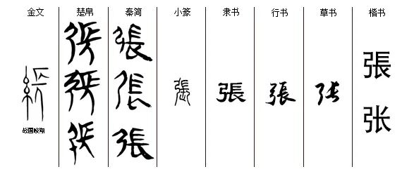 “张”zhāng,会意字,“張”的简体字,从弓从長,“张”字最早见于战国晚期。弓,与弓有关;长,距离远的,造字本义:把弦安在弓上,引申为‘开弓、展开、拉紧、扩大、放纵’等。