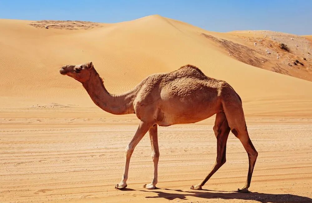 《前汉·西域传》鄯善国多馲驼。《注》师古曰:脊上肉鞍,隆高若封上,俗呼封牛。或曰驼状似马,头似羊,长项,垂耳,有苍褐黄紫数色,性耐寒恶热,夏至退毛至尽。人欲载,辄屈足受之。自炖煌往外国,流沙千馀里,无水,有伏流,驼遇其处,停不进,以足跑地,掘之,常得水。