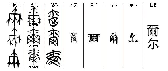 ‘尔’的代词义由西周时期所造的‘妳’(嬭)而来,但右边的‘爾’有所变形,有宗教成分,此处暂且不提。