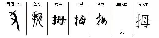 “拇”mǔ,形声字,从扌从母,“拇”字最早见于西周金文。扌,与手有关;母,母亲,造字者认为手中最大的指头可抱住其他四指,喻义其他四指之母,故造’拇’字。造字本义:手中最大的指头,引申为手足中最大的指头。