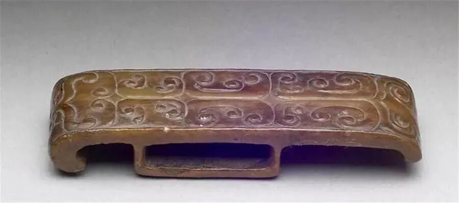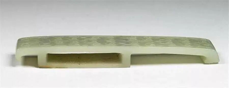 玉具剑:是指用玉料制作的附属物嵌缀于剑体和鞘上的一种剑。它始于东周,西汉时达到鼎盛期,以后逐渐衰落,唐以后就很少见了。剑上的玉具最完备时共有四件,即《汉书·匈奴传》颜师古注引孟康所说的“摽、首、镡(xín)、卫”,其中首和镡装在剑上,而摽和卫装在鞘上。东周时的玉剑饰,多半只有两件,直到西汉才出现一剑而四件玉具齐备的标本,魏晋以后,玉具剑饰又变得简单了。玉具剑主要是高层统治者佩用,以显示“尊卑有度”。玉剑饰上常有云纹、谷纹及龙虎凤鸟、兽面等纹样,皆是古代吉祥、尊严的思想反映。