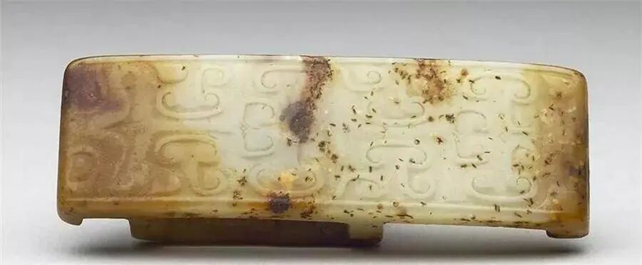 东周时期,开始在剑上安装玉质剑首和剑格,并在剑鞘上安装玉质的璏(zhì)和摽(biào),这种装有玉质附件的剑,即所谓“玉具剑”,典雅华贵,主要用于佩饰。