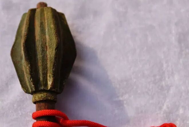 秦以后,由于战车退出了历史舞台,铜殳也逐渐淡出战场,但它的演变体却一直在发展。一个方向是实战,而另一个方向是礼器。在实战方向上,殳安上了“刺”,也就变成了“蒺藜骨朵”,也就是我们俗称的“狼牙棒”,因为其杀伤力巨大,甚至被北方游牧民族吸收利用。礼器方向,到了汉代,出现了一种叫“金吾”的兵器,就是一种两段涂金的铜棒,朝廷中御史大夫、司隶大夫一级的官员可手持“金吾”。因此,历史上才有了刘秀那句名言:“仕宦当作执金吾,娶妻当得阴丽华。”