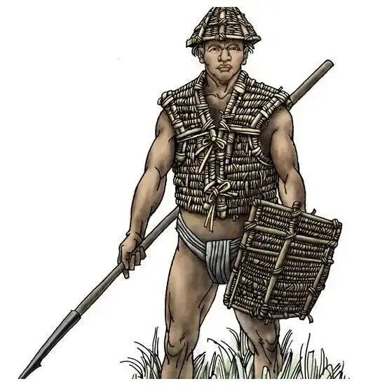 甲冑的发明据传说是受到动物“孚甲以自御”的启发,模拟着动物保护躯体的甲壳,人们也在身上披裹东西用以保护自己。从民族学资料可以了解到,最原始的护甲仅仅是在身上缠裹一些树皮、藤条,进一步则把藤条编成藤甲。此外,原始护甲也用动物皮制作,开始可能把整张兽皮披裹在身上,之后逐渐作些简单的裁制加工,使其更合身,从而形成了具有一定型式的整片皮甲。