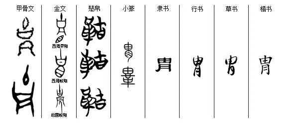 “冑”zhòu,会意兼形声字,从由从冃mào,‘冑’字最早见于商代甲骨文。由,油滴入容器,此处引用‘容器’义;冃,帽子,两形会意,表义帽子套了一个容器即头盔,‘由’字的油滴恰似头盔上的缨饰,这种由字形和意符组成的原始汉字不失为一种精妙。西周时期,帽子和上部头盔字形连在一起,又加上了意符‘目’,此处‘目’表义‘人头’,表示头盔戴到头上,眼睛从头盔中露出。春秋时代的‘冑’亦然。战国时代,有的‘冑’在头盔形之下加‘元’字,‘元’与头盔形共用笔划。‘元’本义是首,整个字像人把头盔戴在头上。战国时有的‘冑’是从革从由,表示头盔是革做的,《说文》古文同此。小篆字形与甲骨文字形一脉相承,只不过头盔形多了一横。今隶、楷书的‘冑’字直接源自小篆。造字本义:头盔。