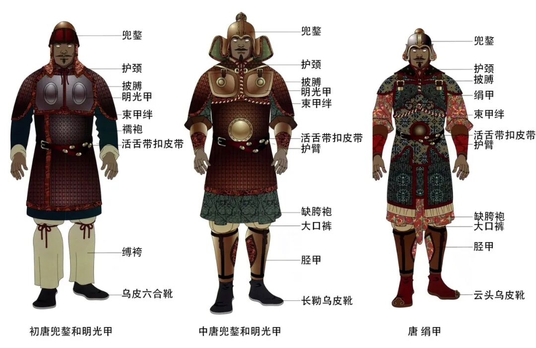 隋唐五代时期甲冑的发展大致可以区分为三个阶段,一是从隋到唐初,二是唐代,三是从唐晚期到五代十国。其中唐代承前启后,是最重要的阶段。