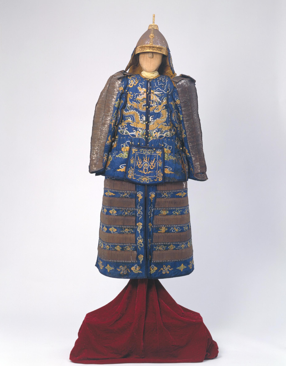 皇太极御用 蓝色缎面绣龙纹铁叶甲冑