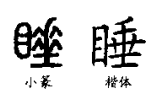 “睡”,会意兼形声字。小篆的“睡”字“从目从垂”,以眼皮的垂下表示打瞌睡。《说文解宇》因而释为:“睡,坐寐也。”楷书一脉相承,写作“睡”。