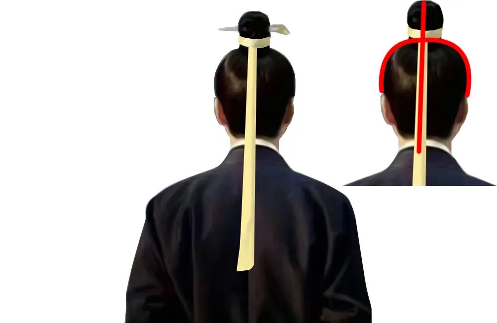 北周武帝宇文邕yōng时期,对汉魏时期流行的幅巾做了改进,将方帕裁出四脚,用以裹头。其两条系于颅后垂下,二条反系在头上,这种形制的头巾称“幞fú头”,又称“四脚”、“上巾”或“折上巾”。