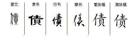 “债”zhài,形声字,本作‘責’,‘債’的简体字,从人从責,‘債’字目前最早见于《说文》小篆。責,扎手的钱财,此处引用‘責’的引申义‘欠钱’;人,与人有关。造字本义:欠人钱,引申为‘欠人的诸事’,如血债、债主等。