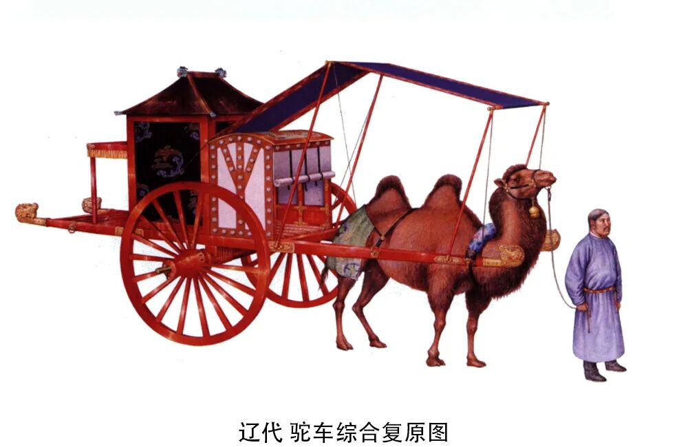 除了牛车外,在古代曾一度享有尊贵地位的还有辽代的驼车。驼车因为产于奚地,又称“奚车”。据《辽史·仪卫志》记载,辽朝的皇帝车舆分国舆与汉舆两种。