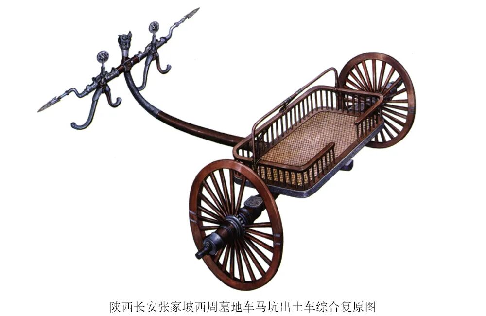 西周车比较明显的变化是在舆前部普遍出现了另装的车轼(shì,扶手的横木),车轼的安装、固定、支撑的方法在茹家庄BRCH3号车马坑1号车上看得最清楚(参见BRCH3号车马坑1号车复原图),其高度也比车