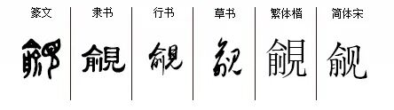 “觎”yú,形声字,‘覦’的简体字,从見俞声,‘覦’字目前最早见于《说文》小篆。見,向前看;俞,织布梭子,此处引用‘越来越、逐渐’的引申义。两形会意,即指看到的越来越多,引申为‘欲望、贪念’等,如觊觎(希望得到非分的东西)、窥觎(伺隙图谋)、觎心(求取的欲望。)等。