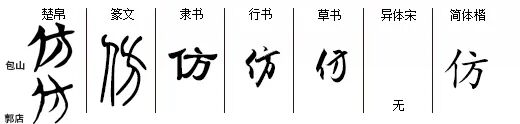 “仿”fǎng,形声字,从亻方声,‘仿’字目前最早见于战国时期的楚系简牍。亻,与人有关,一般指所有人,偶尔特指男性;方,人的周围,此处引用‘多面’的引申义。造字本义:人的多面,如仿效、模仿等;引申为‘事物的多面’,如仿真、仿宋等。