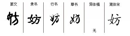 “妨”fáng,形声字,从女方声,‘妨’字目前最早见于《说文》小篆。女,与女人有关;方,人的周围,此处引用‘多面’的引申义。两形会意,特指女人的多面,亦或多才,亦或多疑。在人类的历史上,母系氏族社会已经有六万多年的历史,而父系氏族社会只有五千年的历史。在距今约六千年前,有着更加复杂与曲折的性别较量,最后以女人的历史性失败而告终。于男权社会而言,女人的多面无疑是一种‘阻碍’,反之亦然;于人性而言,见仁见智。显然,‘妨’的造字者必定是男性。造字本义:女人的多面,引申为‘阻碍、有害’等。