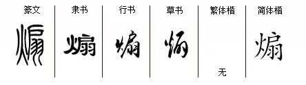 “煽”shān,形声字,从火扇声,‘煽’字目前最早见于《说文》小篆。火,与火有关;扇,门板开合像鸟翅膀扇动。造字本义:对着火扇动(使其更炽热),引申为‘鼓动、催动’等,如煽弄(煽惑玩弄)、煽骗(吹嘘诈骗)、煽情等。