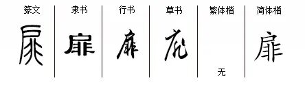 “扉”fēi,会意字,从户从非,‘扉’字目前最早见于《说文》小篆。户,单片门板;非,背对的鸟翅膀。两形会意,指不能扇动(开合)的门板,特指位于‘門’后、‘户’前的隔断,后人称之为‘照壁、影壁、萧墙’等,也是‘屏风’的前身。造字本义:不能开合的门板,特指一种隔断,介于‘門’和‘户’之间,由此引申为‘介于外与内的一种境界’,如心扉、扉页等。