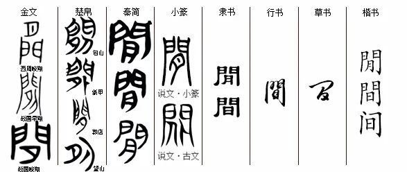 备注:从古文献中可以看到一些其他的发音及用法,如xián、通‘闲’,但个人觉得这个用法只是‘空间’的一种引申而已,很勉强。