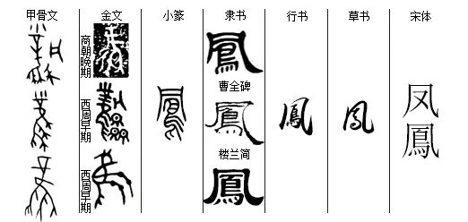 “凤”fèng,象形指事字,‘鳳’的简体字,‘風’的本字,‘鳳’字最早见于商朝甲骨文。甲骨文的‘鳳’主要有两款:一款是有‘舟’的,另一款是无‘舟’的。‘舟’是商人的氏族族徽,商人祖先生活在长江中下游,流动性强,他们崇拜鸟,热衷于人祭、舟、水牛、象等,且很早就见过孔雀,商族认为他们祖先一定是比孔雀还要高贵的鸟。其下方的‘隹’较原始的‘隹’字的细节更多,鸟头部的图形即指羽冠。几乎绝大多数鸟类都有其明显或不明显的羽冠,尤其是雄鸟,羽冠成为炫耀的最佳武器。