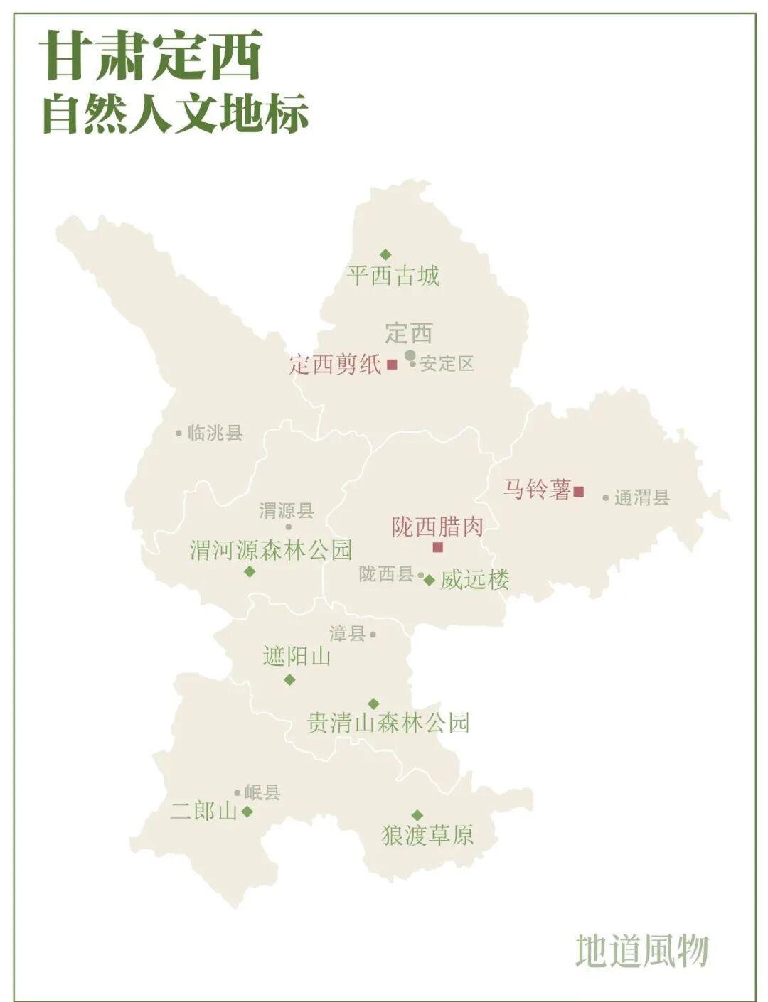 陇中高原秦腔震响,洮岷花儿唱遍河川,在中国,很难见到如定西一般,对土地感情如此深厚的地方。定西下辖一区六县:安定区、通渭县、渭源县、陇西县、临洮县、岷县、漳县,处处都有一张或多张“风土”名片。