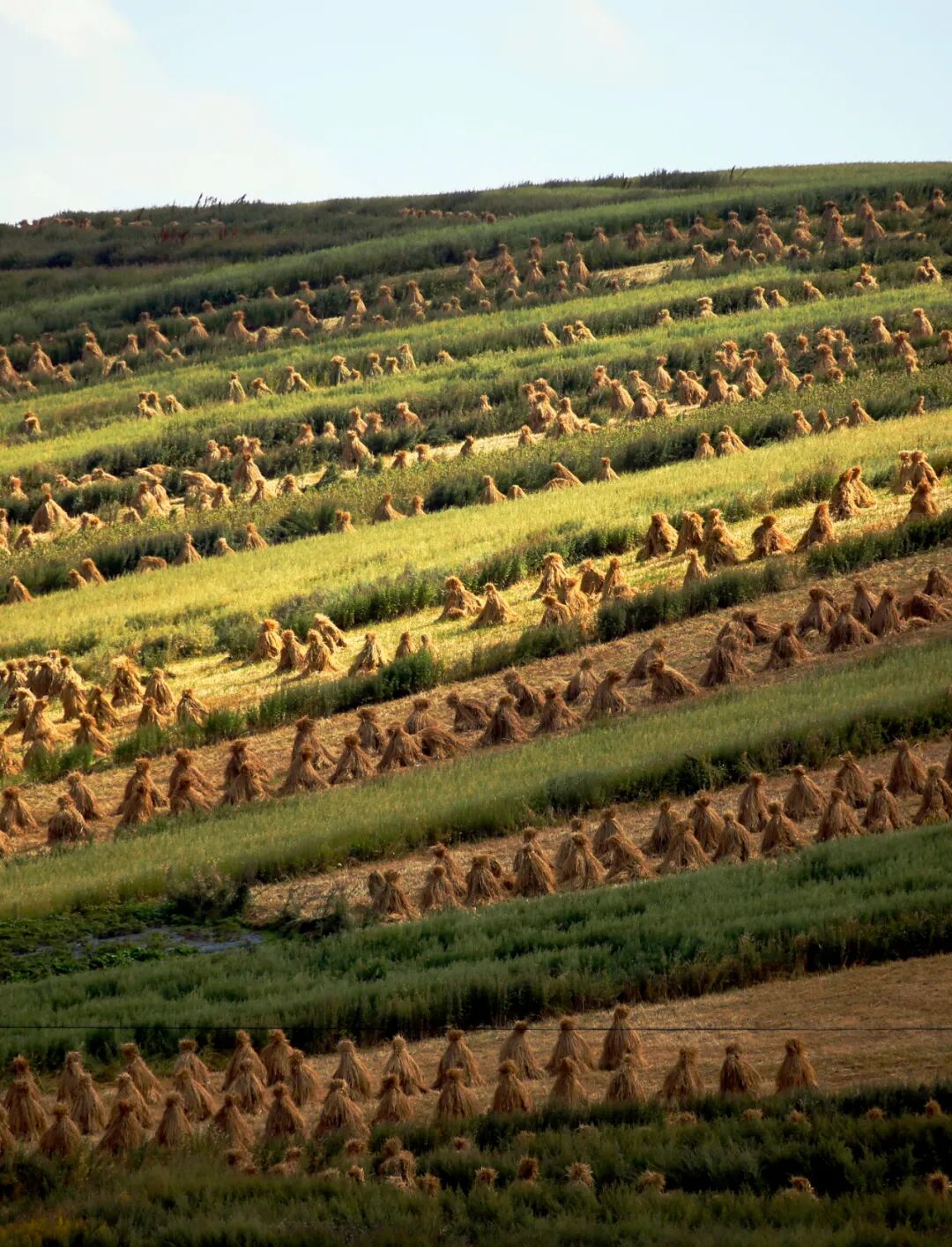 ▲ 狼渡草原上收割好的草垛,牧民们用来过冬。 摄影/冉创昌