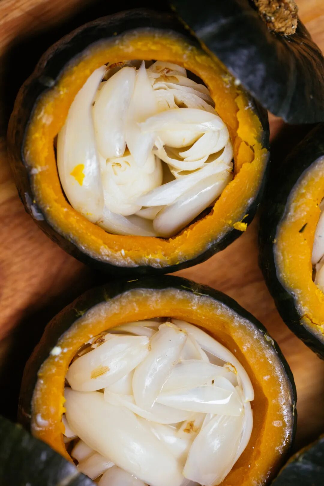 简单的蒸制则能保留百合本味。蒸百合,热腾腾的水汽伴着兰州百合的清香气味一同飘出,不必再添加糖和蜂蜜,就已甜美又绵软。南瓜算是最常见的蒸百合搭配,蒸过后的百合更显白润,南瓜更显金黄,滋味香甜可口,俨然成就了一种“金玉良缘”。