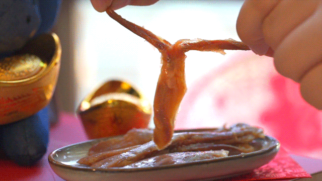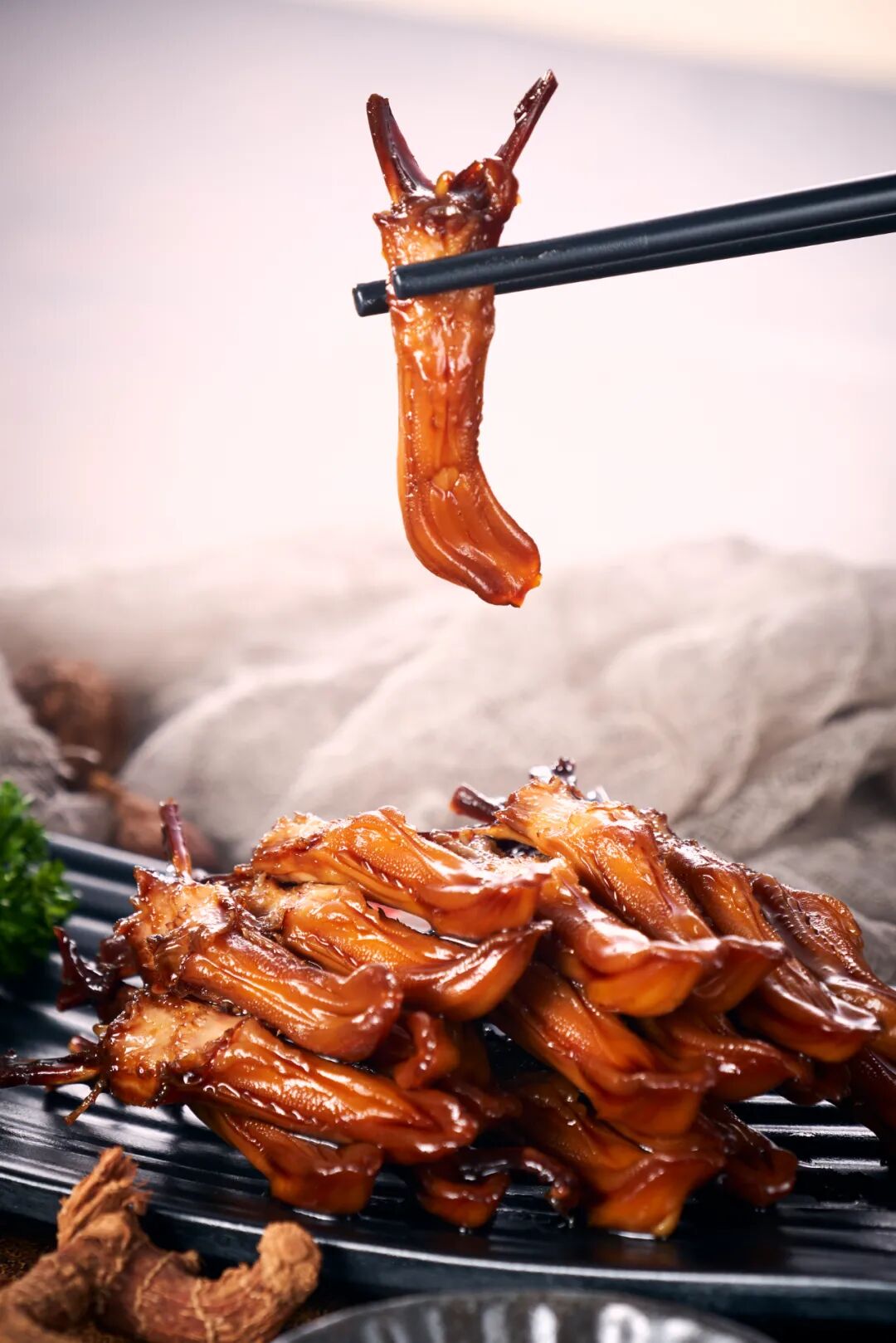 这话其实欠妥,鸭舌明明是温州人的动力源。你看,离家打拼的当地人,总是习惯带上一大包故乡的酱鸭舌,那都是亲人满满的爱;拎着鸭舌上路,左一嘴右一嚼,咔滋咔滋地响,思乡之心也扑通扑通地跳——要努力赚钱呀,来年吃更多更好的鸭舌。