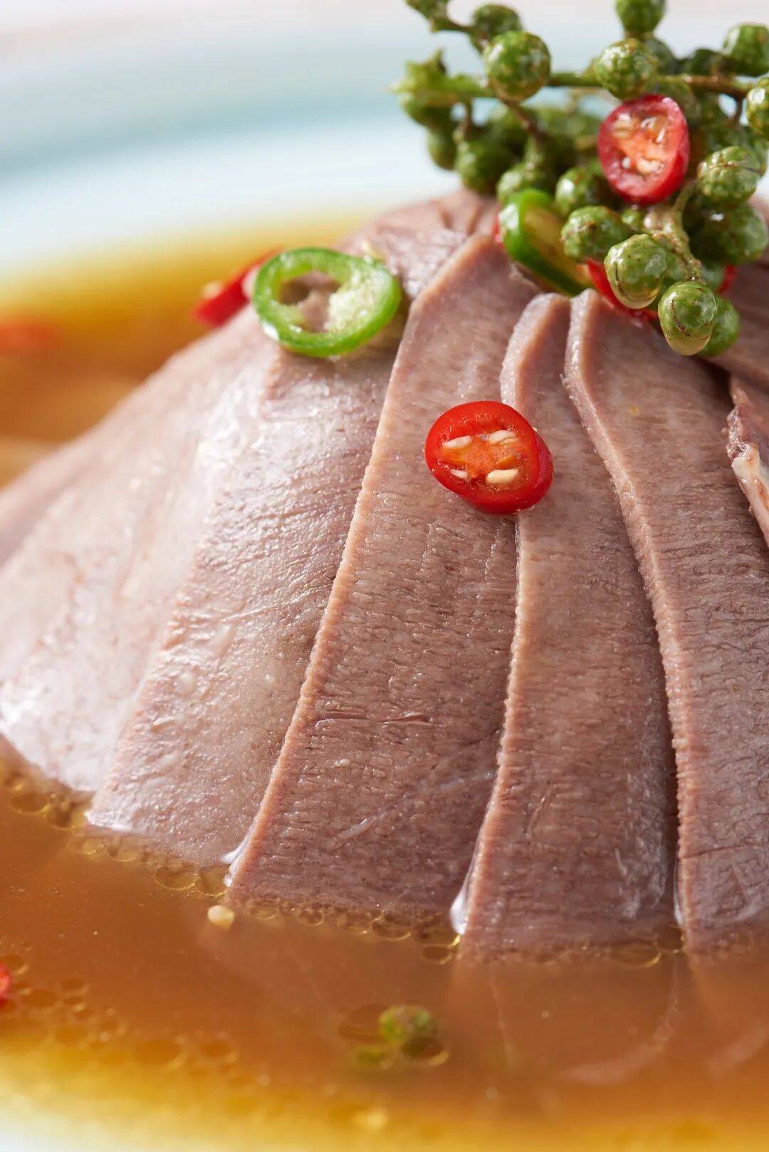 请把镜头转到岭南。这里牛多,善于烹饪的广东人,自然不会放过美好的牛舌。先将它入水汆烫,细细切去舌苔,再整根放入咕嘟作响的卤锅里,让悉心调配的卤汁,逐渐浸透牛舌的每一寸肌理,最后切片上桌,来啦饮酒先啦!
