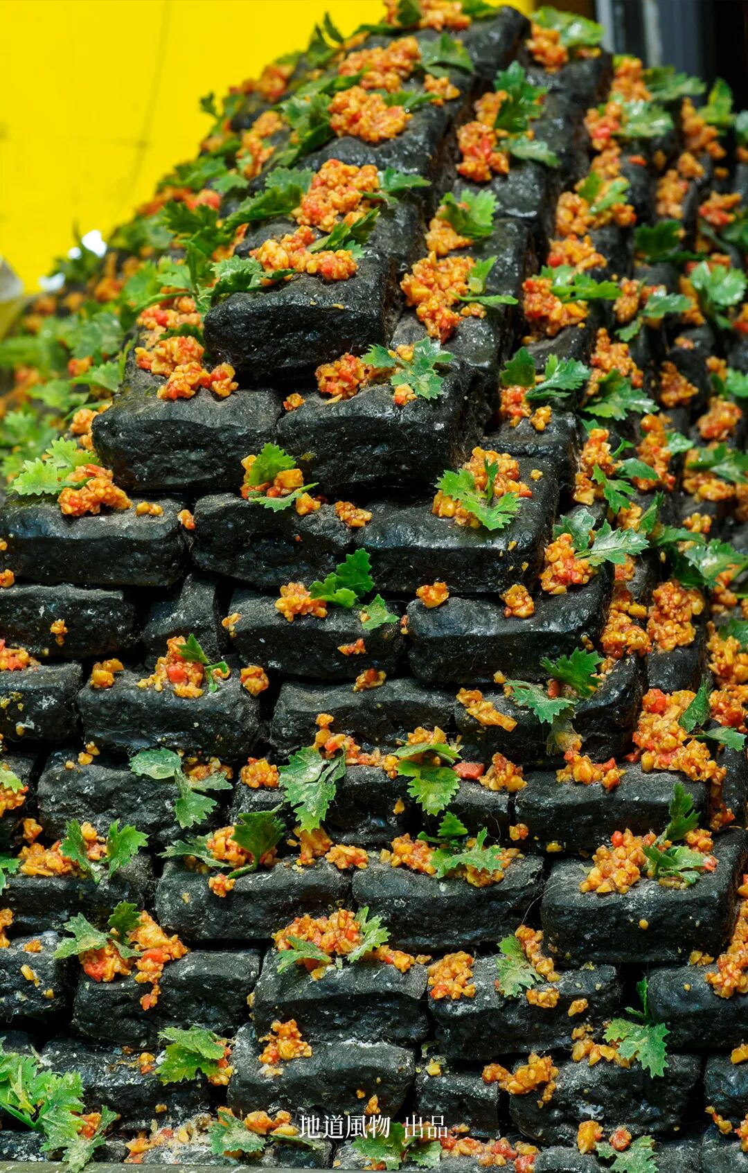这种臭豆腐又叫臭干子,最终成品是纸碗里加了辣椒和蒜蓉的黑色方块豆腐,油光发亮,红里透白,几乎构成了全国人民对臭豆腐的第一印象。