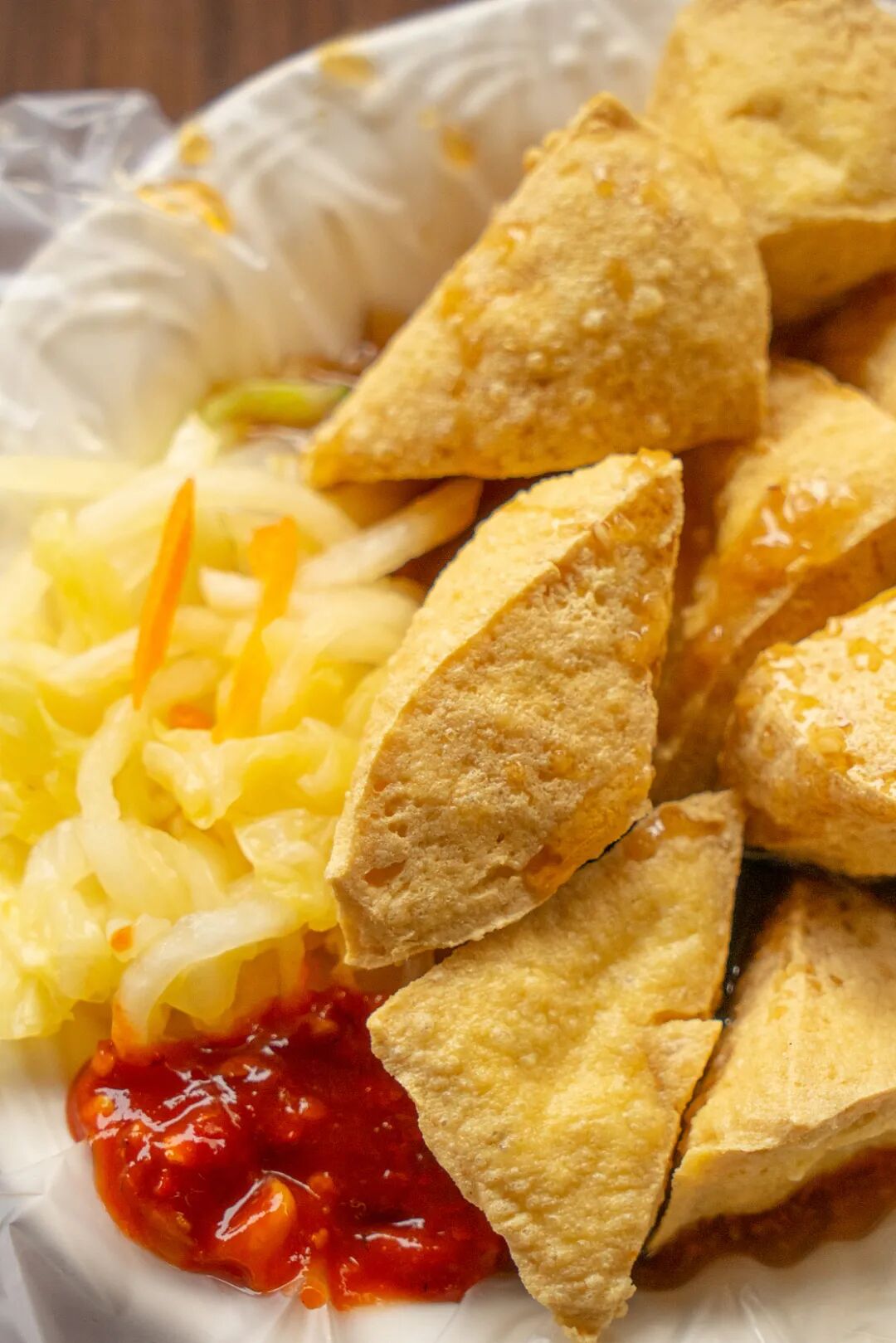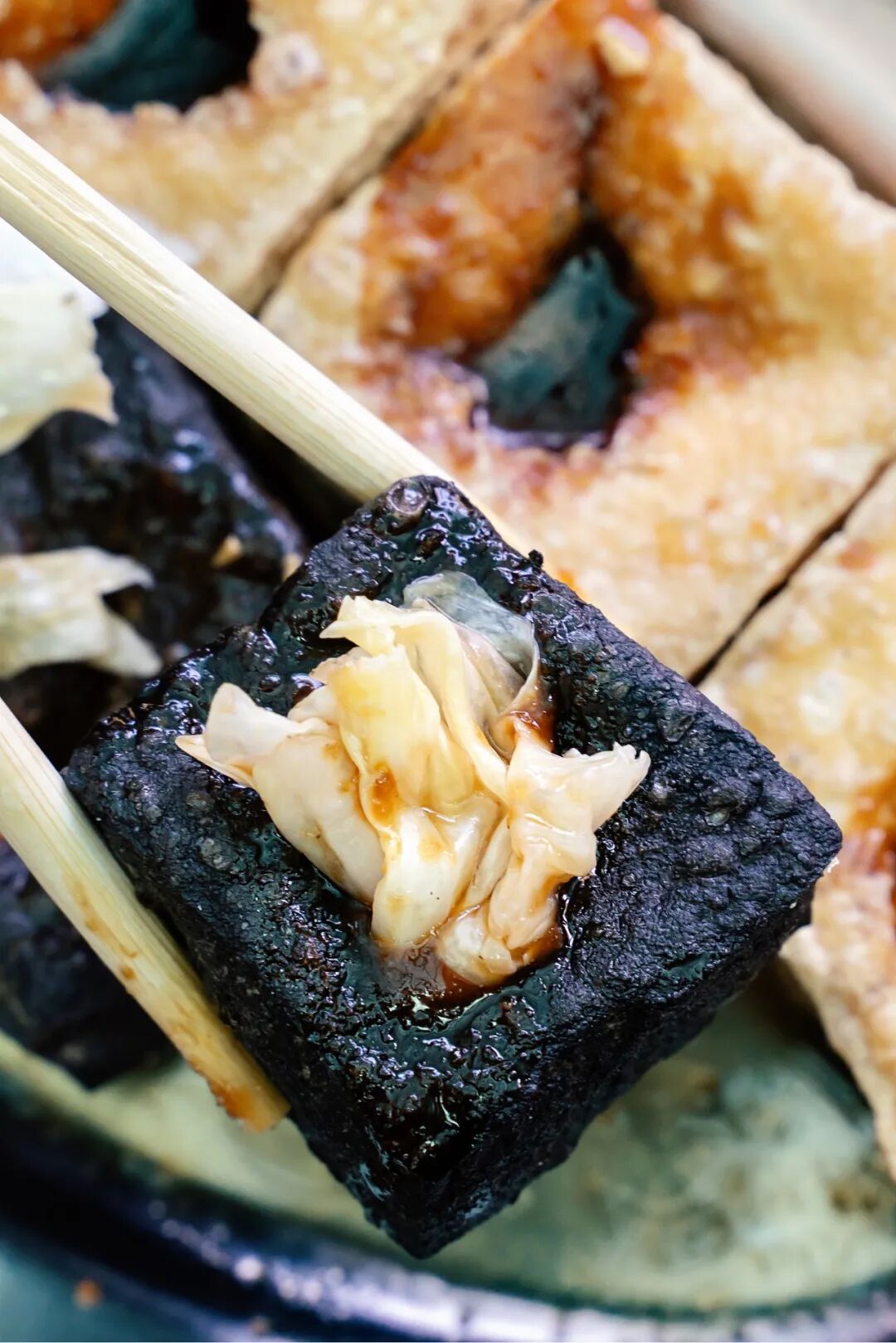 台湾臭豆腐与南京臭豆腐很像,但调味要用特制的酸菜和辣椒酱,几乎(打死)不碰辣椒的台湾人,却能对臭豆腐里的辣椒网开一面,可见它的味道有多迷人。