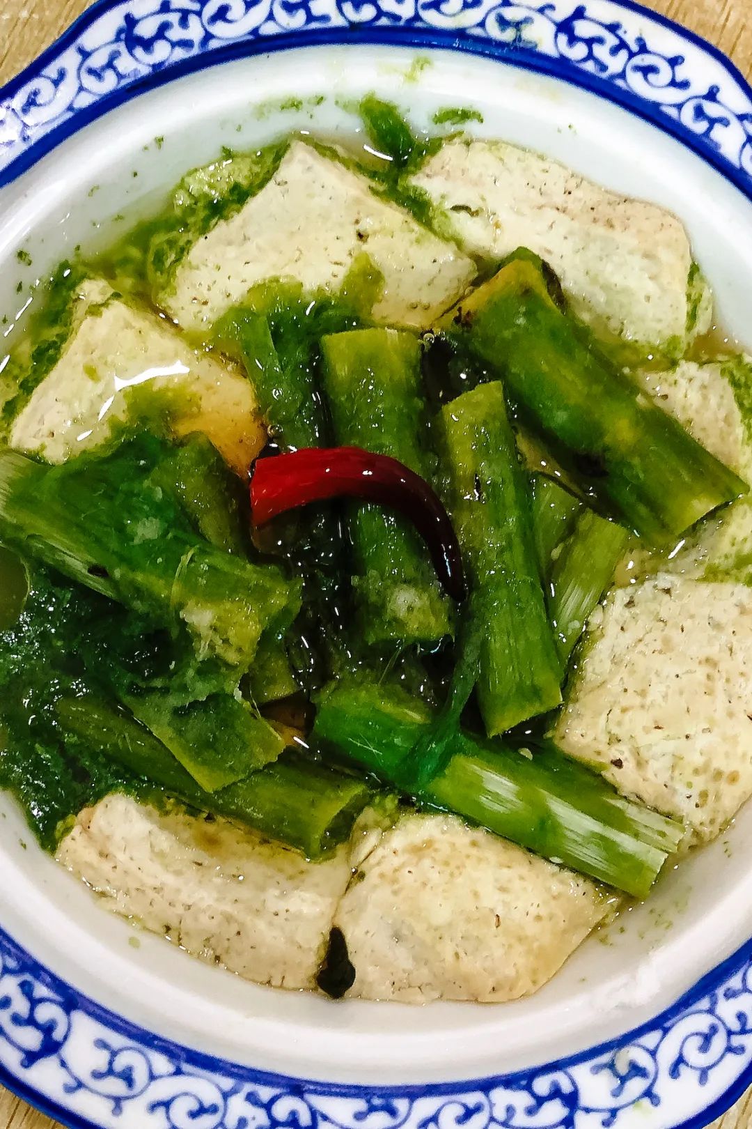 这样的毛豆腐,自然要用最地道的做法,做出最隆重的仪式感:油要手工压榨,辣椒酱要够红够亮,葱花要切的齐齐整整,一盘毛豆腐,才能“红”运当头,锦上添“花”。遥想当年多少徽商,就是吃着这样方方正正的毛豆腐,走出了磊落大方的经商之路。