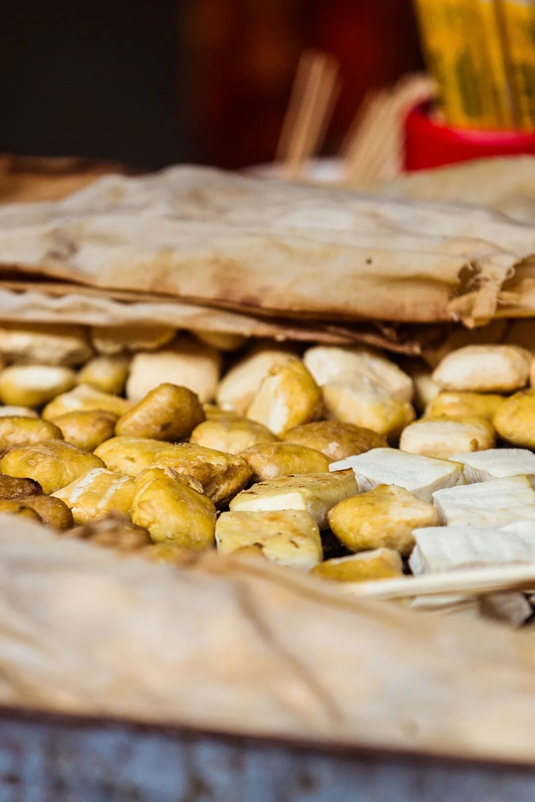 云南建水烤臭豆腐摊,也卖各种当地小吃。