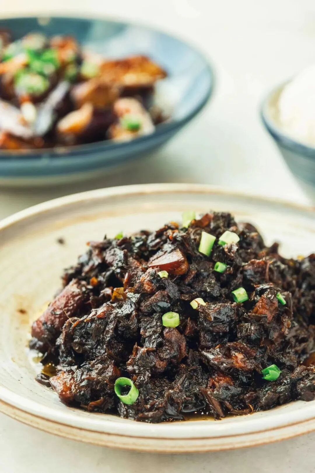 茴香豆和绍兴黄酒自不必提,绍兴风味里最有特点的还是硬核干韧的“霉”味食品,比如梅干菜,比如霉千张。
