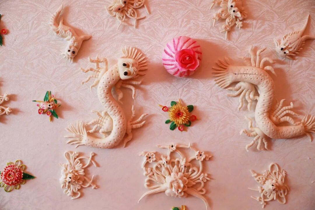 不同的花馍,又被赋予不同的意义,进入陕西人的生活里:春节蒸枣花馍、元宝馍;元宵蒸羊、狗、鸡、猪形的馍;寒食上坟,给祖先供奉“蛇盘盘”馍;七夕节做石榴、桃、鱼形的馍……无论逢年过节,还是婚丧嫁娶,花馍已经与陕西人密不可分。
